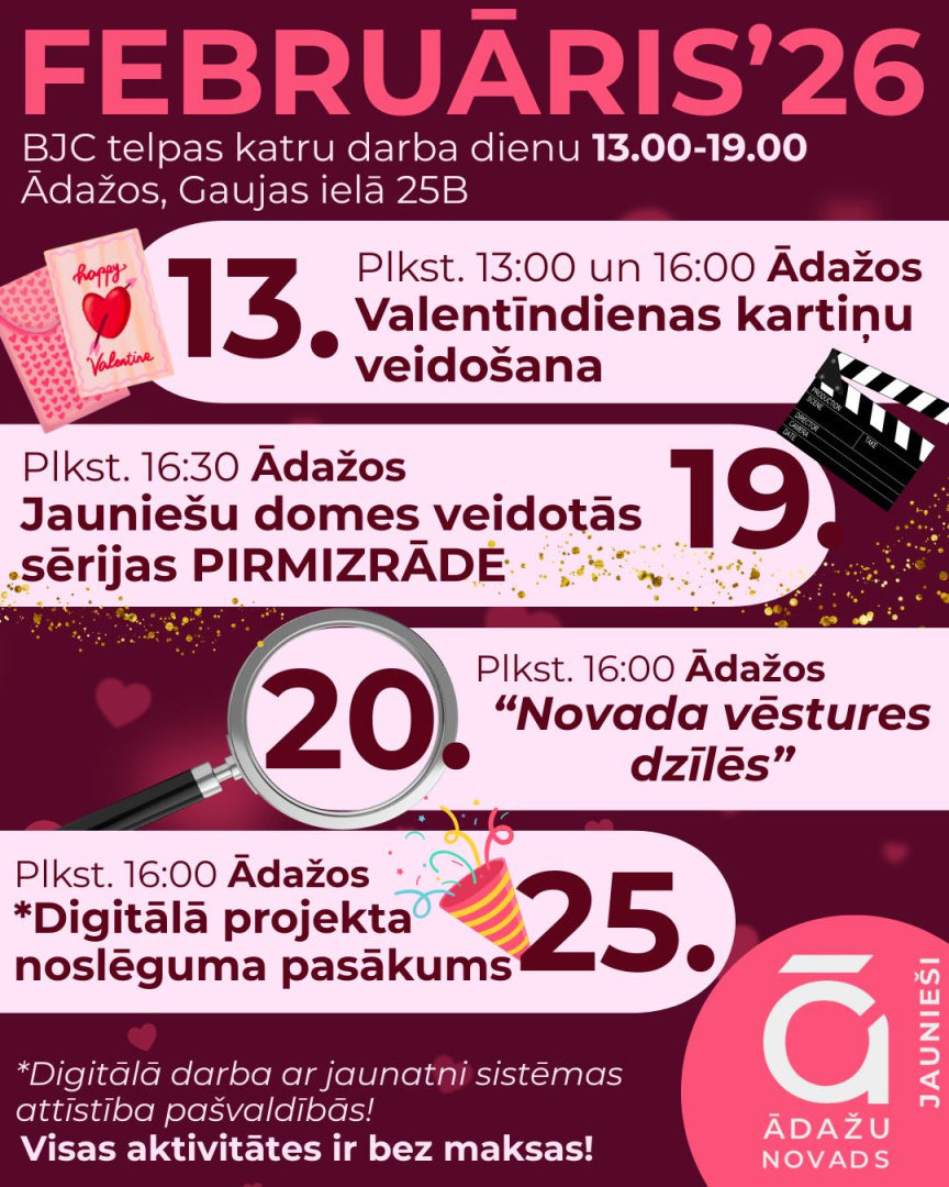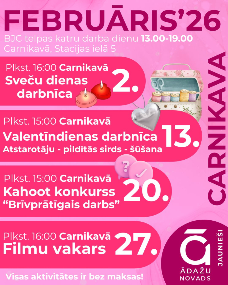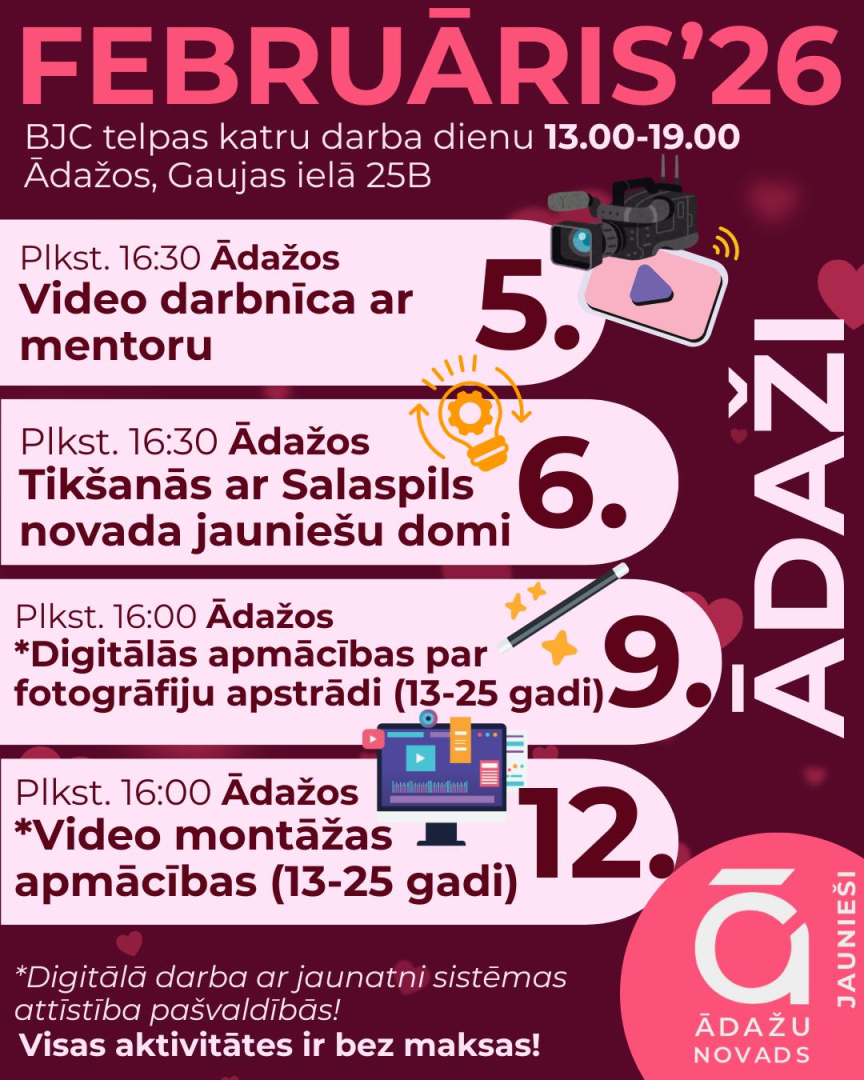 Ādažu novada jauniešu ikmēneša aktivitāšu plāns