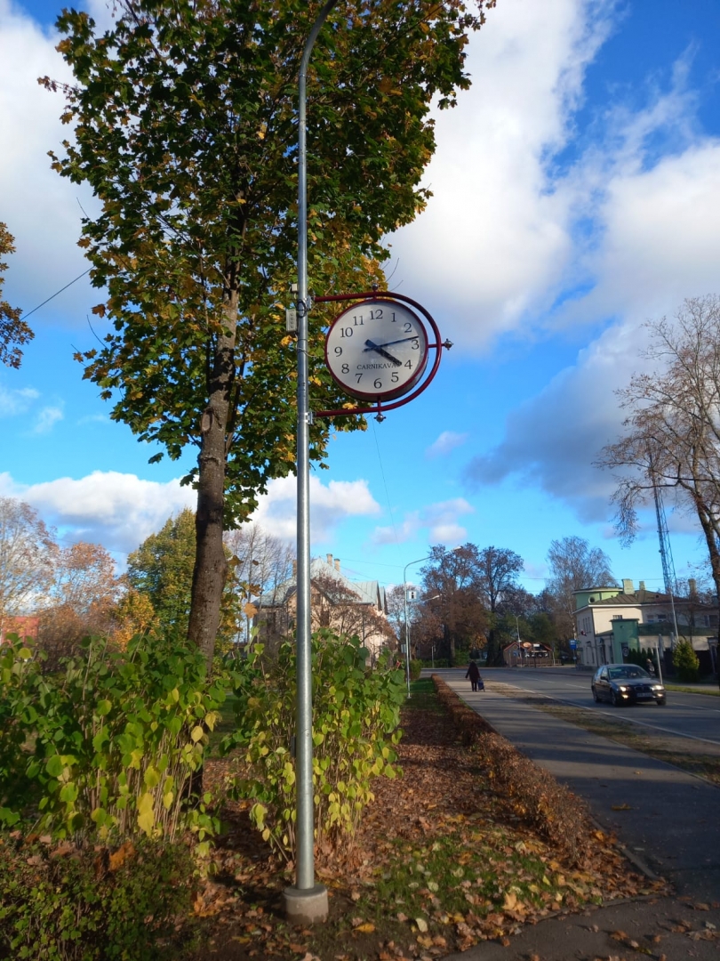 Carnikavas ciema centrā uzstādīts āra pulkstenis