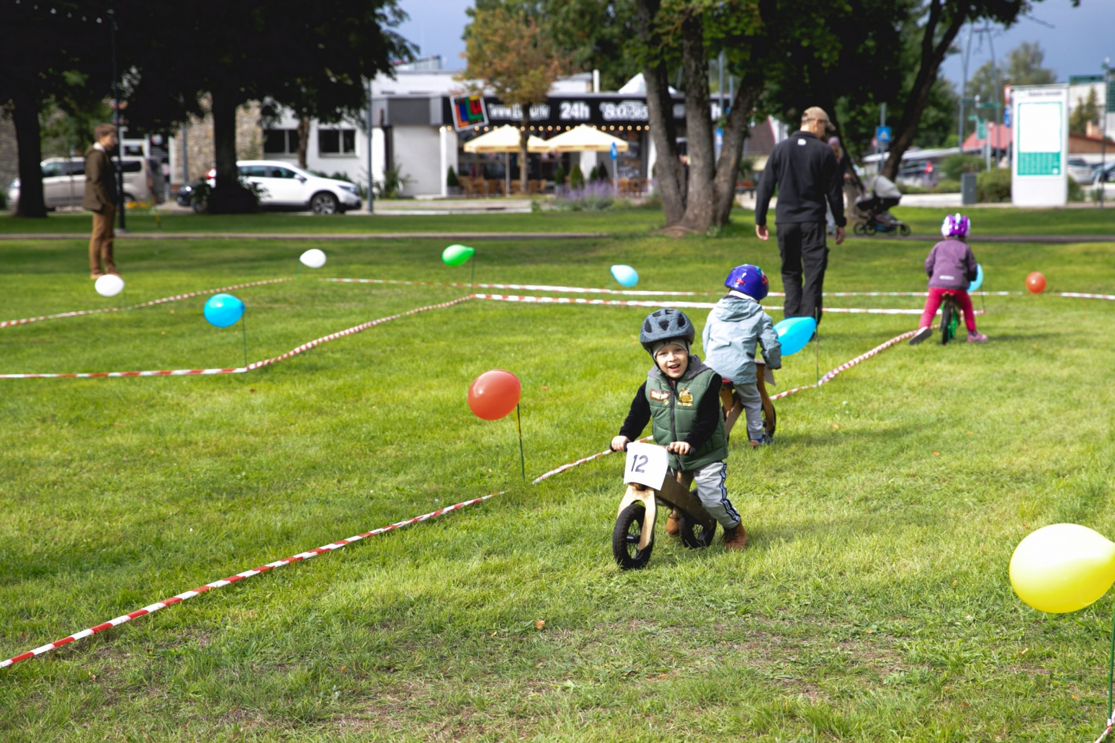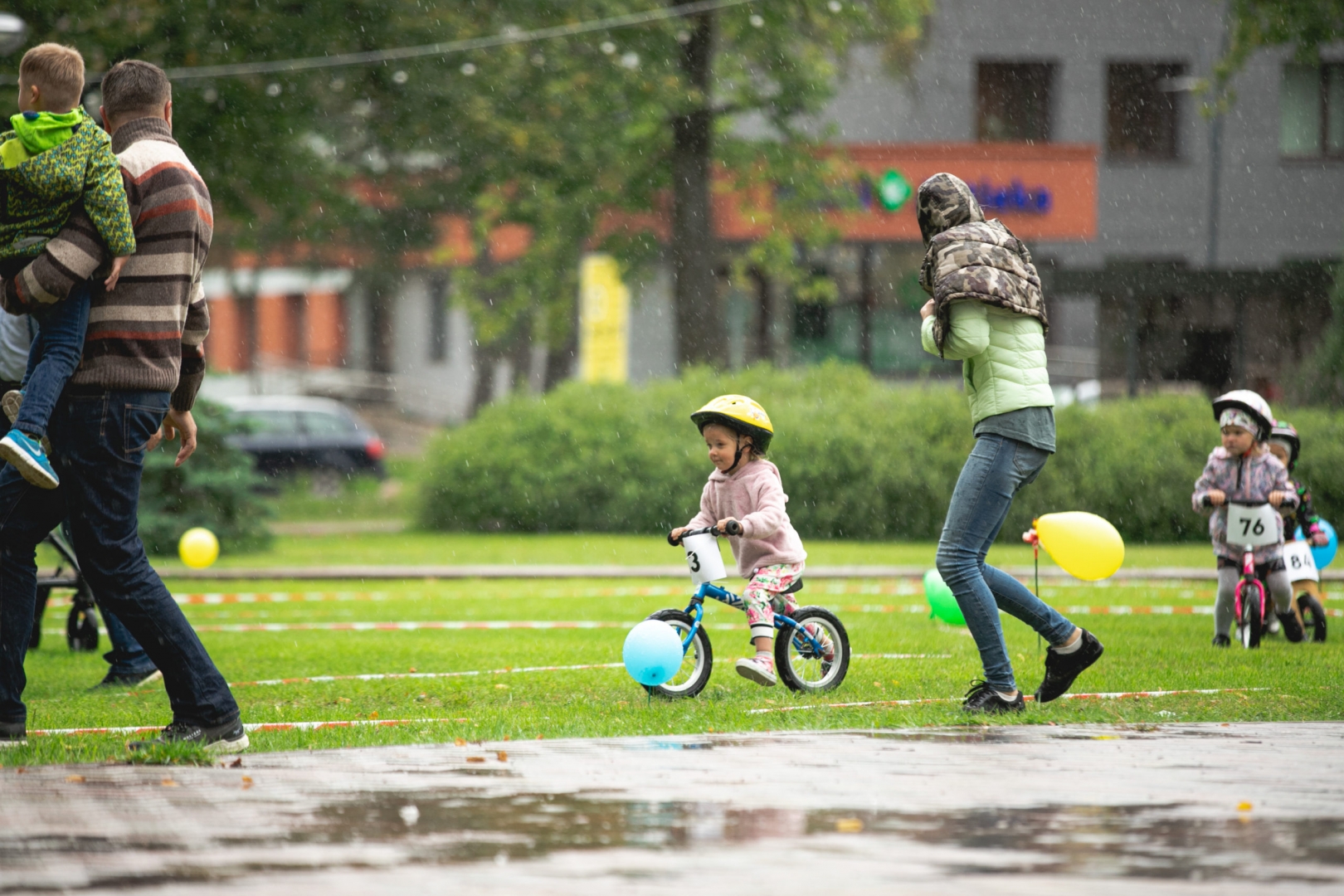 FOTO: Spītējot lietum, aizvadīti Ādažu aktīvas atpūtas, sporta, kultūras svētki un Bezpedāļu rallijs pašiem mazākajiem