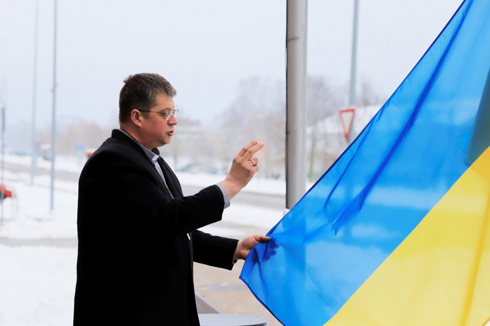 Iesvētīts un pacelts mastā Ukrainas karogs pie Mākslu skolas, solidarizējoties ar Ukrainas tautu cīņā par brīvību