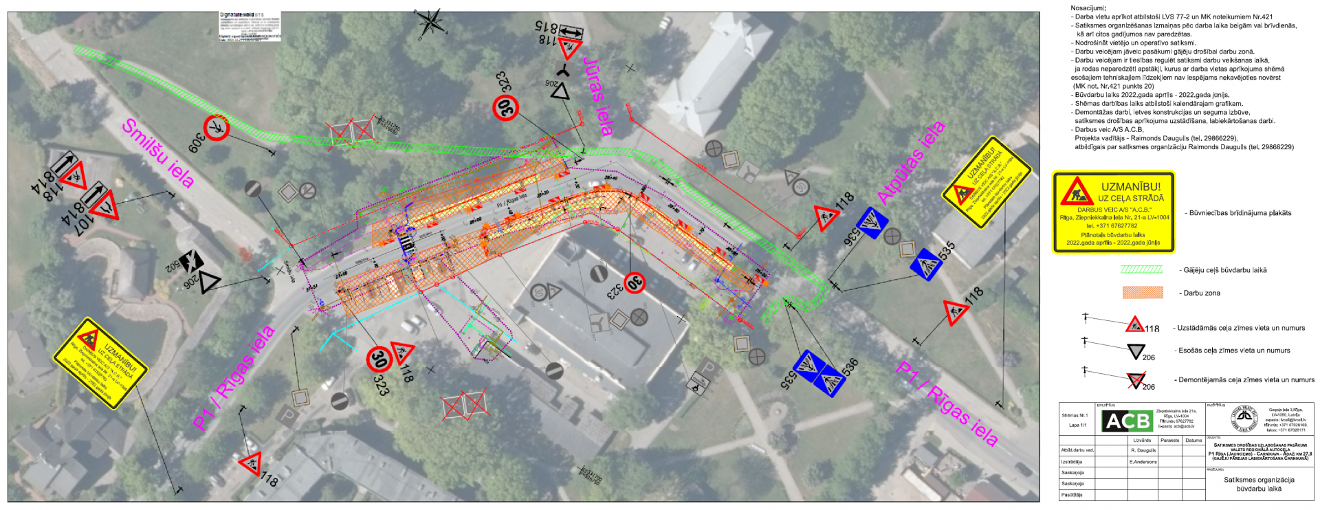 Informējam, ka arī automašīnu stāvvietas gar būvdarbu zonu būs ierobežotas. Autostāvvietas tiks norobežotas, lai netraucētu tehnikas piekļūšanai būvdarbu laikā (skatīt attēlā Nr. 2). Gājēju kustība tiks novirzīta atbilstoši satiksmes organizācijas shēmai, jo darba zonā gājēju ietve gājēju kustībai būs slēgta. Satiksmi darbu veikšanas laikā organizēs ar ceļazīmēm un vadstatņiem, iespējama arī īslaicīga satiksmes organizācija pa vienu joslu ar satiksmes regulētāja palīdzību.