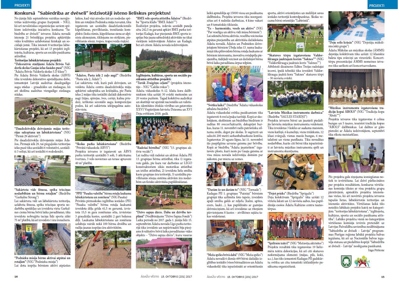 Īstenoti iedzīvotāju iniciatīvu atbalsta konkursa “Sabiedrība ar dvēseli” 2017.gada projekti