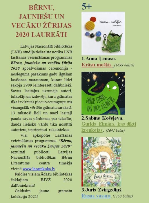 Zināmas TOP 3 grāmatas – 2020. gada laureātes!