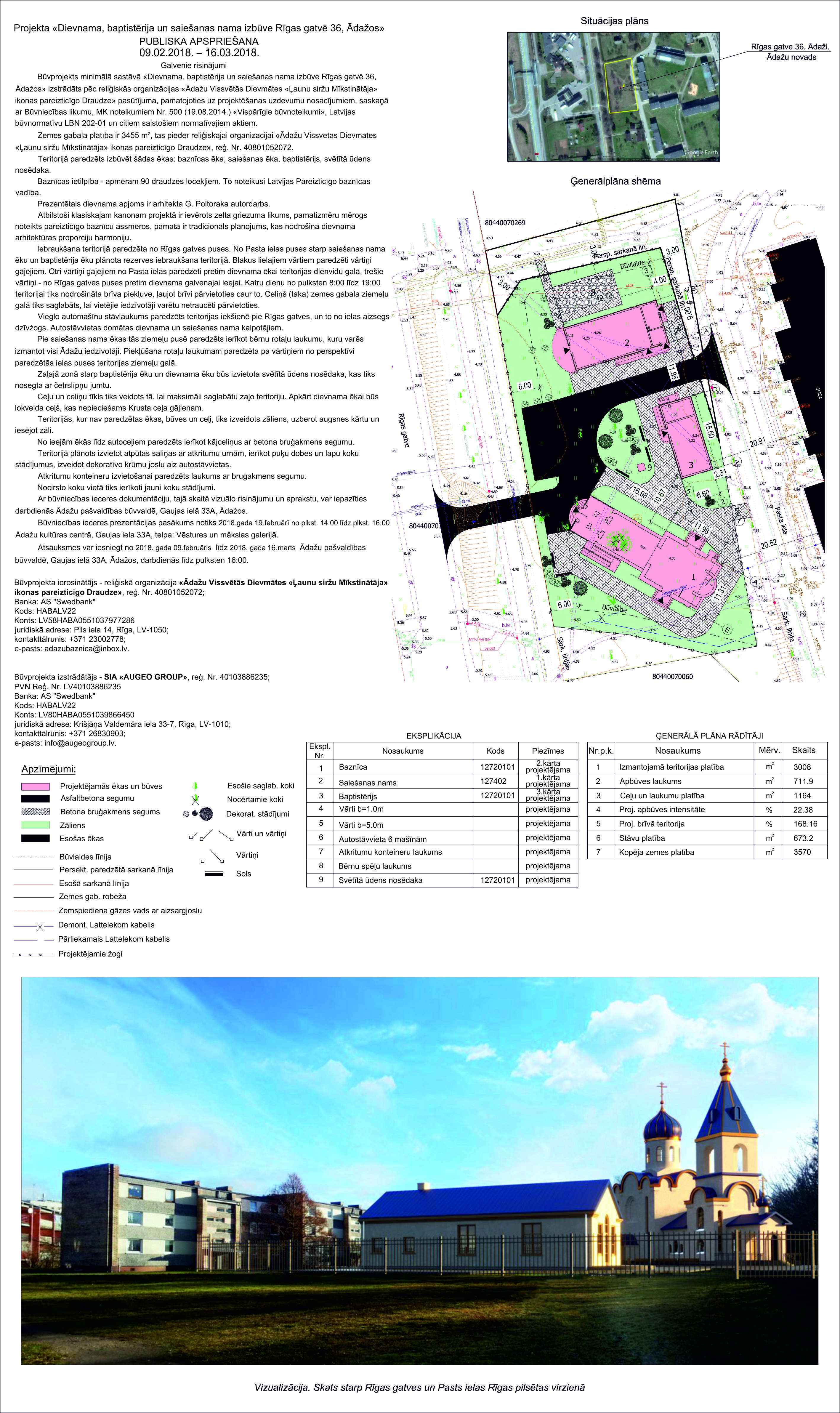 Būvniecības ieceres prezentācijas pasākums notiks 2018.gada 19. februārī no plkst. 18.00 līdz plkst.20.00, Ādažu Kultūras centrā, Gaujas ielā 33A, Vēstures un mākslas galerijā.