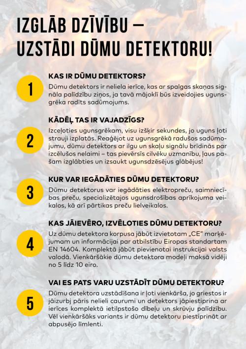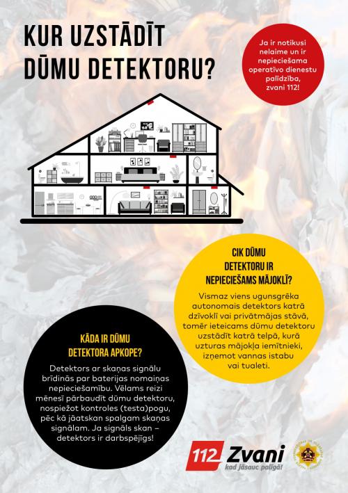 No 2020.gada 1.janvāra visos mājokļos ir jābūt uzstādītiem autonomajiem ugunsgrēka detektoriem jeb dūmu detektoriem.